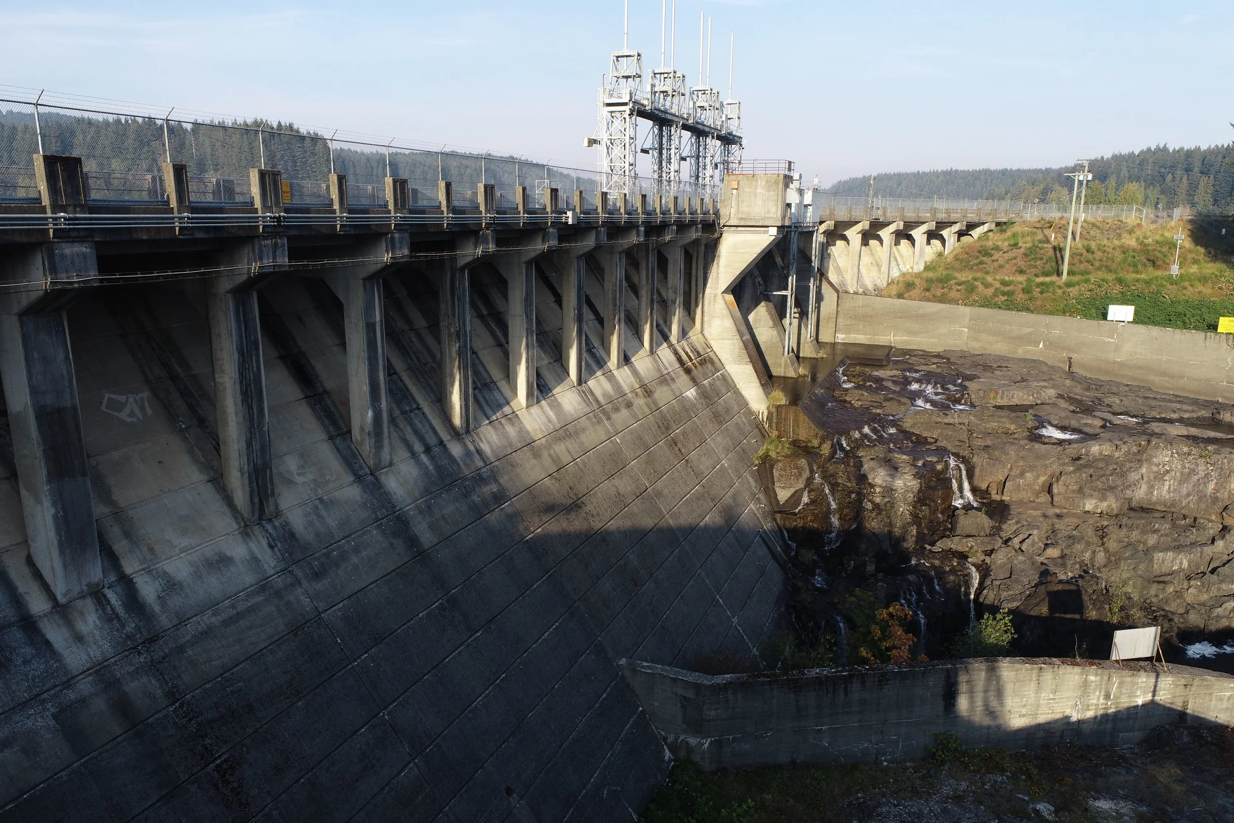 Inspecting condition of Hydroelectric Dam before upgrade work is to take place.