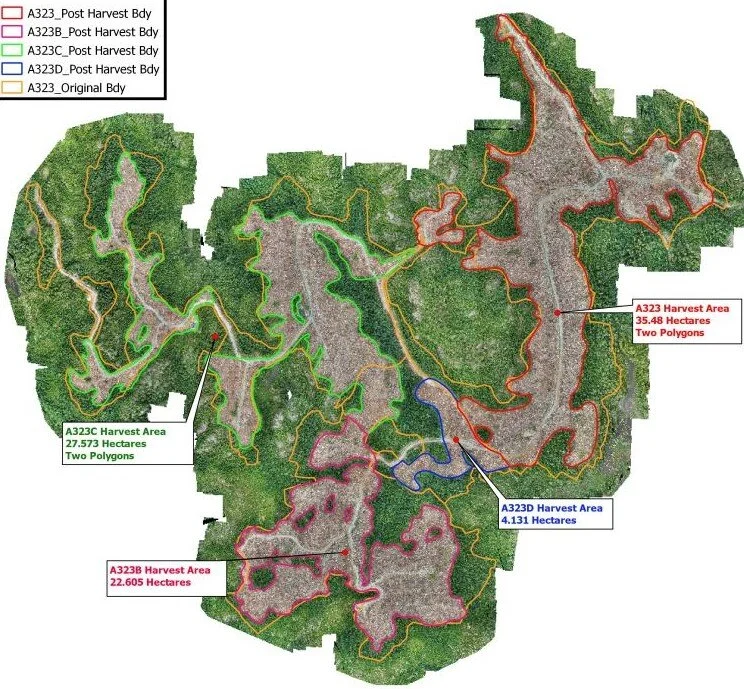 Over time things change: trees blow down, wildfires burn, insects invade. Our high resolution imagery documents the state of the block when the last machine has left. If there are disputes over whether trees were logged by man or nature, this imagery is your due diligence.